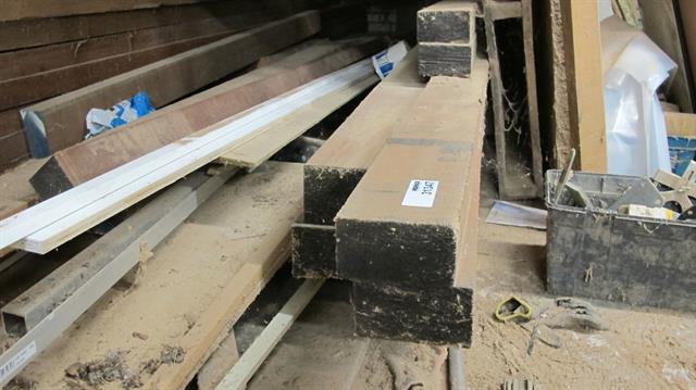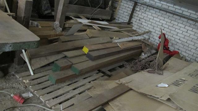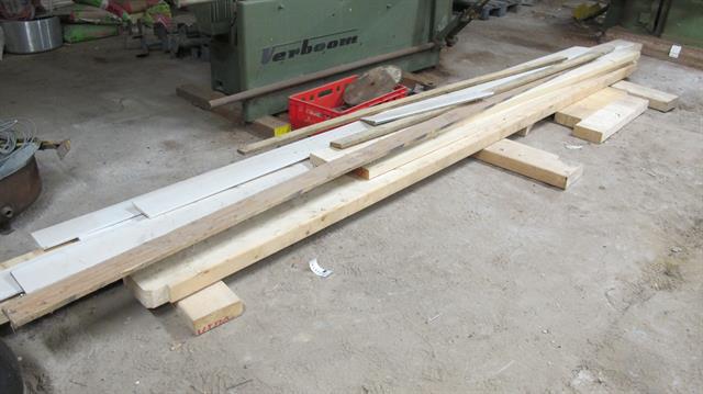 31347 - Diversen complete houtvoorraad o.a. 2 kuub kozijnhout