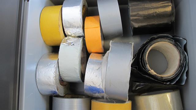 bak met diverse soorten touw en tape