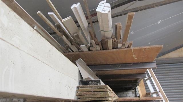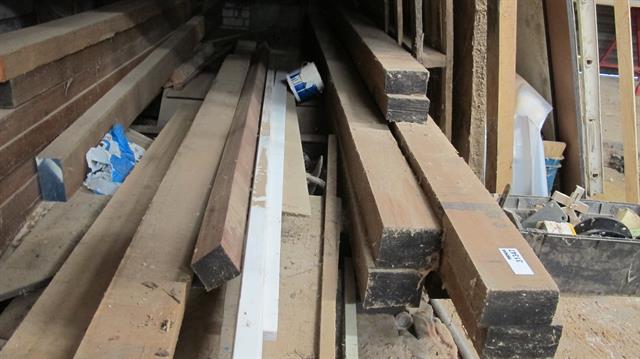 31347 - Diversen complete houtvoorraad o.a. 2 kuub kozijnhout