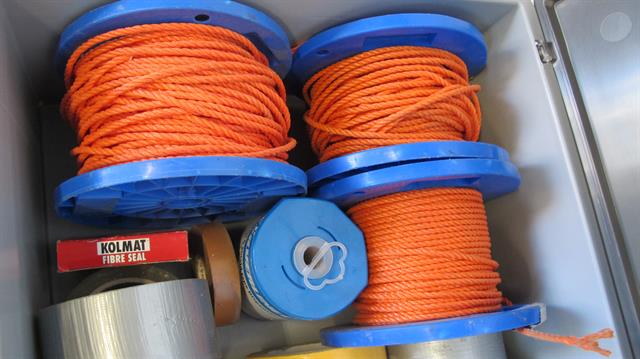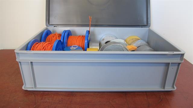 bak met diverse soorten touw en tape